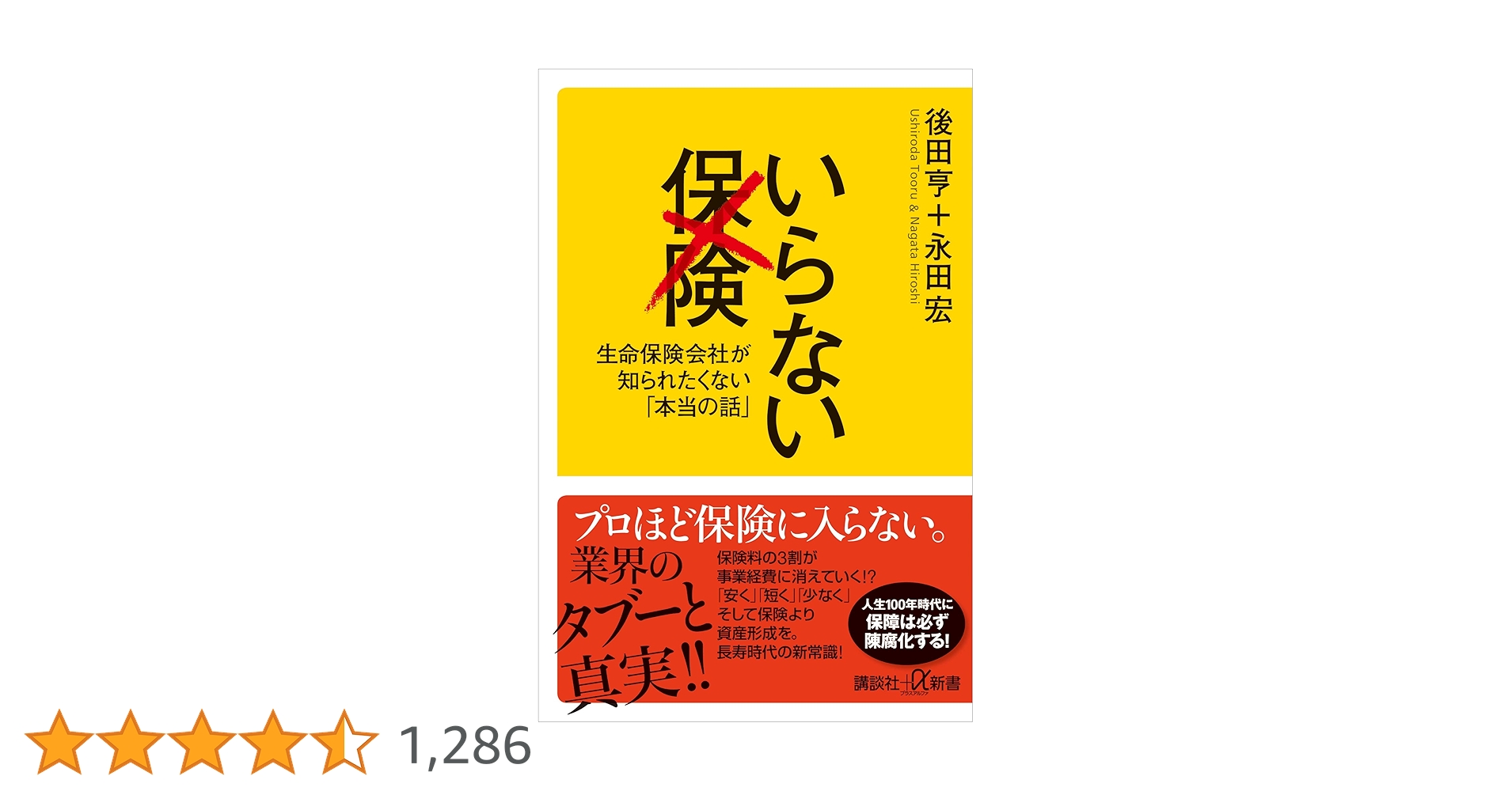 書籍名:いらない保険 生命保険会社が知られたくない「本当の話」 (講談社+α新書)